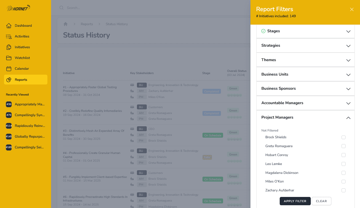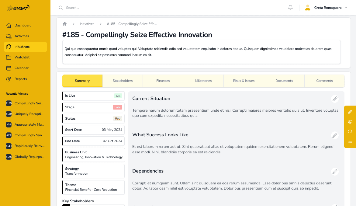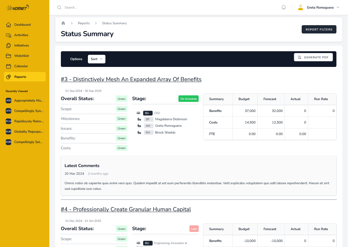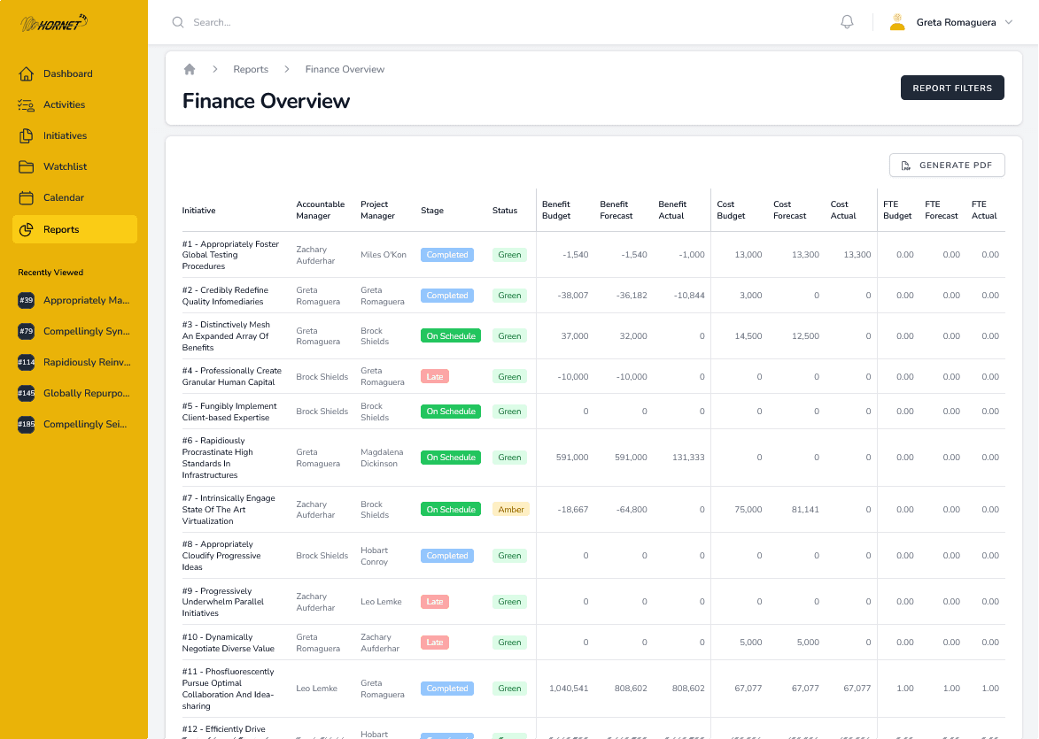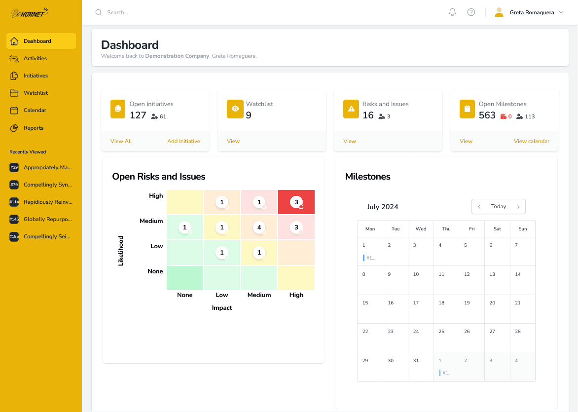 Hornet’s reporting features allow users to create customised reports easily, providing stakeholders with the specific information they need to make informed decisions and track the progress of initiatives.