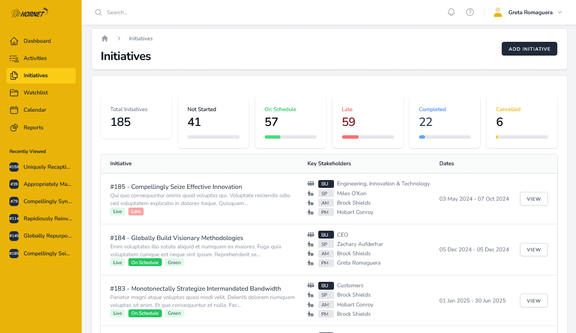 Hornet is beneficial for a wide range of stakeholders including Boards, CEOs, GMs, Project Managers, and other key stakeholders by providing valuable reporting information on the progress and performance of initiatives.